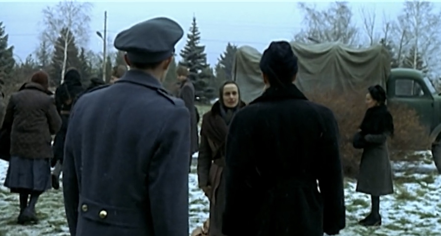 Также хотела обратить внимание на плакат на заднем фоне кадра. «СССР — оплот мира!». Тоталитарный режим не только подавлял физически, но и стремился контролировать сознание граждан через всеобъемлющую пропаганду. Плакат на кадре можно расценивать как яркий пример советской пропаганды; особенно противоречиво он смотрится в контексте неволи главных героев и их безысходности. Они вымотаны, напуганы и загнаны в угол. Однако единственное решение в сложившейся ситуации — смириться со своей участью и привыкать к новому укладу жизни. Собственно что и сделали тысячи прибывших в СССР репатриантов.