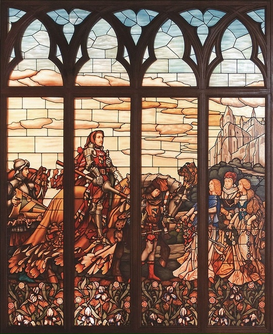 «Встреча рыцаря-победителя». Витраж, М. А. Врубель. 1896