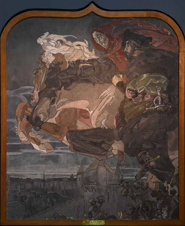 Полет Фауста и Мефистофеля. Эскиз одноимённого декоративного панно (1896, ГТГ) для особняка А. В. Морозова в Москве // Государственная Третьяковская галерея (виртуальная галерея) URL: https://my.tretyakov.ru/app/masterpiece/10597 (дата обращения: 26.11.2025)
