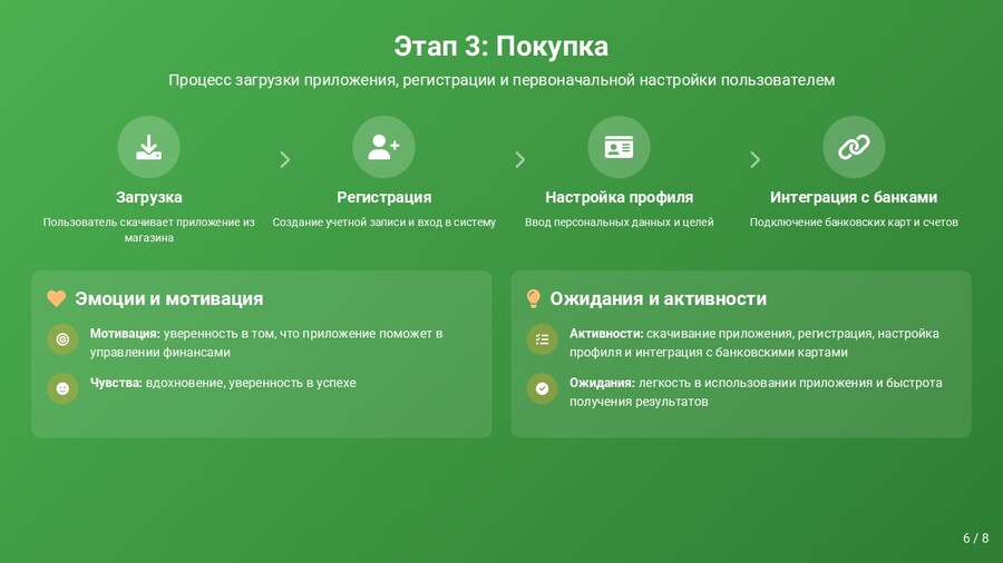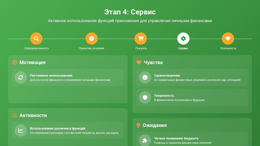 На четвёртой неделе я разложил путь пользователя и процессы внутри продукта. Я сделал портрет целевой аудитории и прописал CJM — от первого контакта до привычного ежедневного использования.
