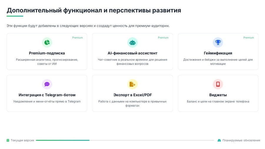 • как FinBalance будет зарабатывать (freemium / подписка / дополнительные функции), • какие ресурсы нужны (разработка, дизайн, поддержка), • какие ключевые партнёры важны (банки, платёжные сервисы), • какие основные расходы и риски.