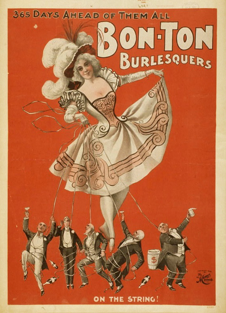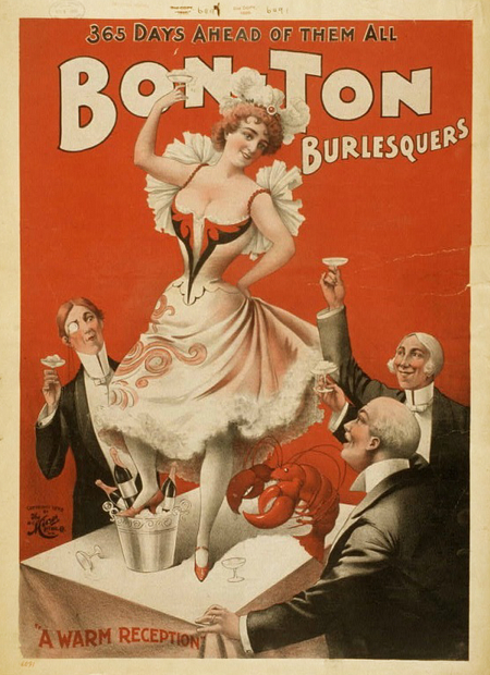 Наконец, Европа, XIX век. Бурлеск появляется на театральной сцене, где мгновенно приобретает статус развлекательного шоу. Первое и самое знаменитое бурлеск-шоу «Британские блондинки» принадлежит Лидии Томпсон. Артистка и продюсер сделала упор на комедийную составляющую шоу, а девушки на сцене не раздевались полностью, на них всегда оставались чулки, панталоны и корсет.