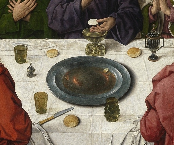 Смысл таинства Евхаристии в христианстве XV–XVI веков заключался в духовном соединении верующего с Христом через причащение. Хлеб и вино рассматривались как Тело и Кровь Христовы, дающие очищение, прощение грехов и укрепление веры. Евхаристия одновременно была воспоминанием Тайной вечери и жертвы Христа, а также актом благодарения Богу. Нидерландские художники того времени стремились показать тайнственность и святость таинства через определенные детали и символы.
