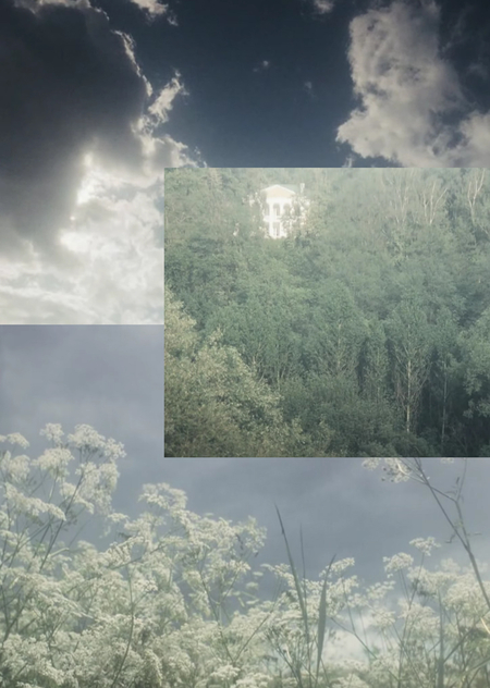 Обложка визуального исследования — облик естественного хода вещей. Трава снизу, под ногами идущего, небо — сверху, а человек живёт где-то между, не в небесах и не под землей. Эта гармония нарушена сокуровскими героями. Коллаж выполнен кадрами из кинокартины «Телец».