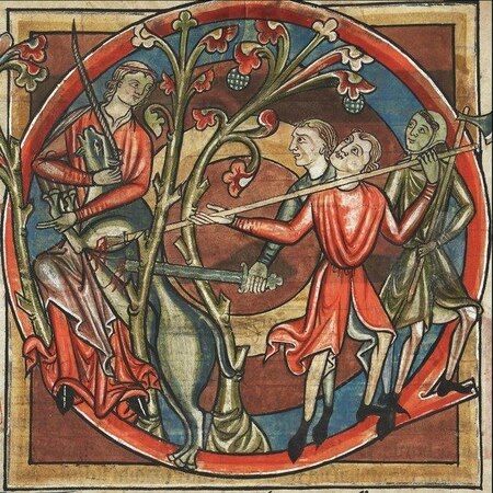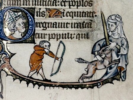 Unicorn-man with bow and arrow. Flemish c 1320-30 / Unicorn Italy c1450 «Flore du vitu e de costumi» gothic.