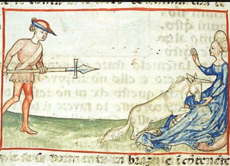В сочинениях христианских писателей единорог — «символ Благовещения и Боговоплощения», олицетворяющий чистоту и непорочность. По легенде они доверяли только девственницам, при виде них единороги склоняли голову и ложились девушкам на колени. Охотники пользовались возможностью и атаковали существ в этот момент.