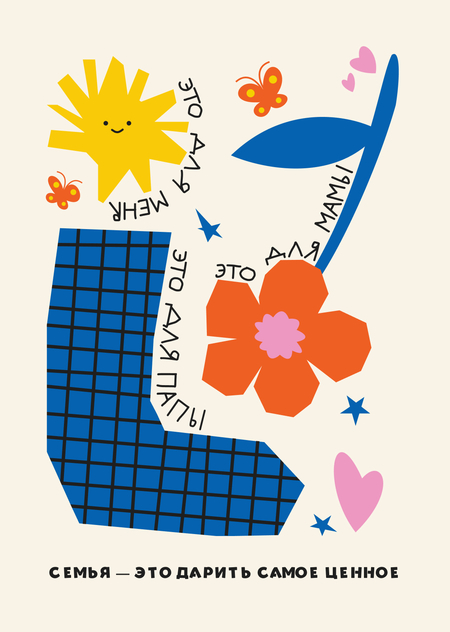 Дарить подарки — это язык любви, особенно когда их создают дети для родителей. Их рисунки полны искренности и тепла. Именно поэтому я выбрала детские рисунки в качестве вдохновения для плаката: они передают самые трогательные чувства и напоминают о важности дарить любовь и заботу близким.