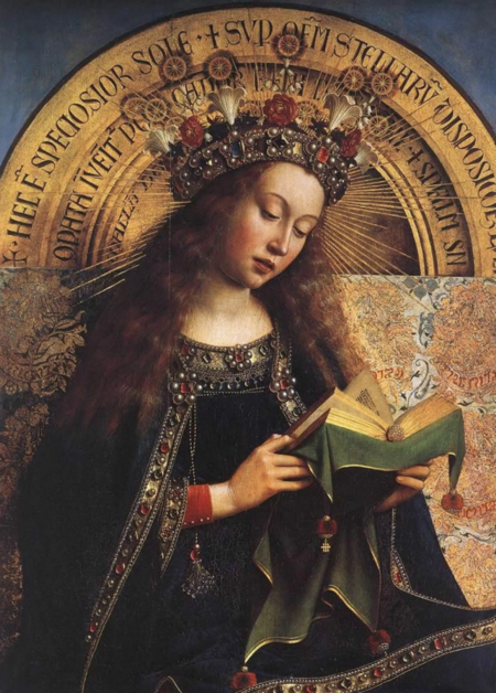 Например, такой мы видим ее на внутренних створках представленного выше Гентского алтаря, картинах Яна ван Эйка «Мадонна канцлера Ролена», «Мадонна каноника ван дер Пале» и других.