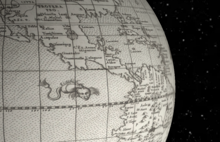 Особенности морских чудовищ: Чудовища встречаются граздо реже чем на карте «Marina». Фокус карты смещён на географическую точность, глобус и морские маршруты. Морские существа, если есть, представлены скорее символически или декоративно, чем как детализированные иллюстрации, но все равно устрашающе.