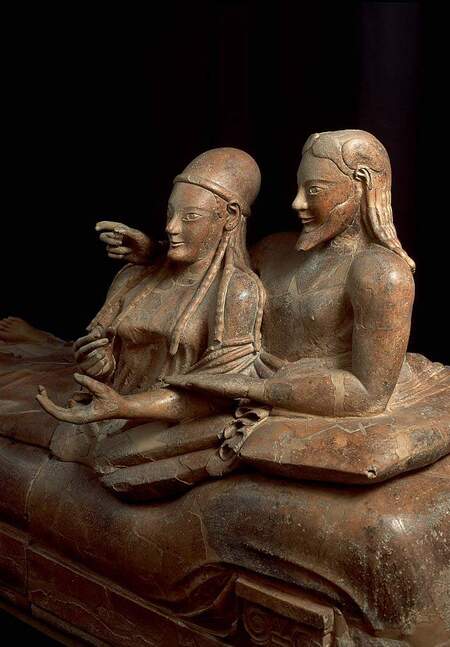Характерным примером этого является Саркофаг супругов — этрусская археологическая находка, выполненная из расписной терракоты и датируемая концом VI века до н. э., один из самых известных памятников этрусского искусства.
