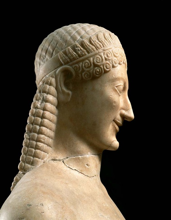 1. Detail of the face, Apollo Milani, Marble, 540–530 B.C. 2. Sarcophagus of the Spouses, 520–510 B.C.