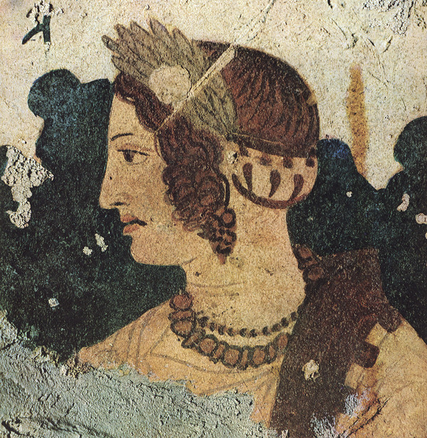 1.Detail, woman’s head, Tomb of the Shields, Tarquinii, ~3rd century B.C. 2.Tomb of the Shields. Tarquinii, ~3rd century B.C.