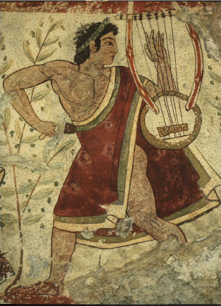 Там же изображены музыканты: • авлет (играет на двойной флейте), • кифаред (лира)