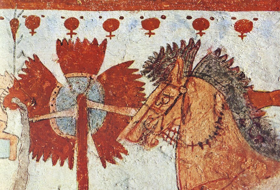 Для них это был переход будто жизнь просто продолжалась где-то дальше, в другом состоянии. И хотя у них осталось много скульптур, ваз и разных расписных вещей, больше всего меня зацепили именно их настенные фрески в их мистическом представлении.