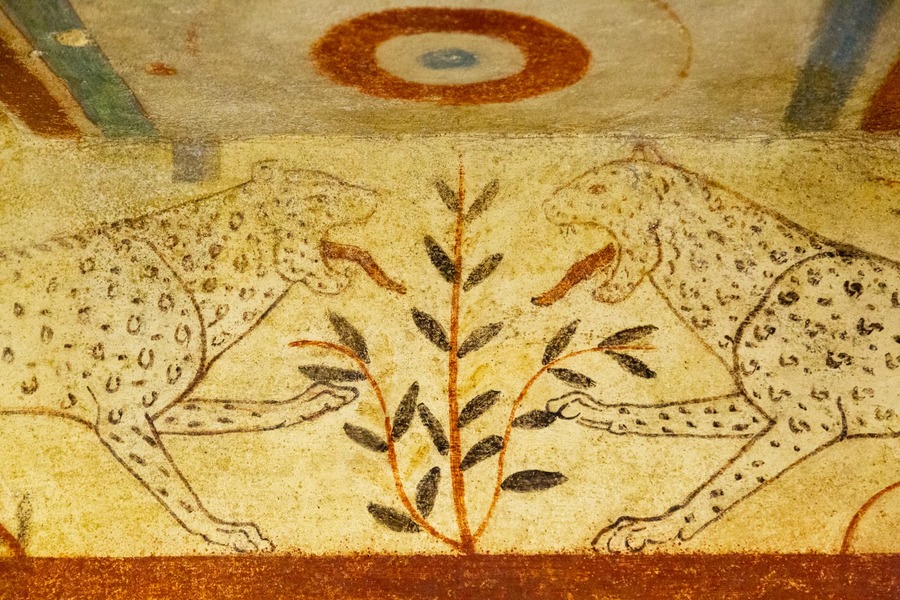Леопарды часто встречаются в этрусских гробницах как стражи перехода в загробный мир.