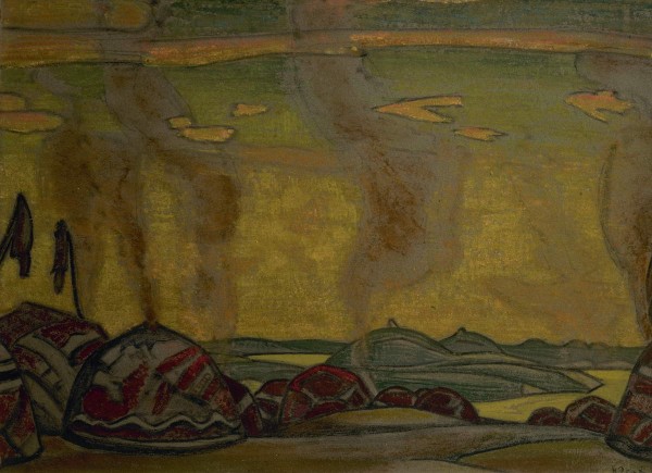 Рерих работает не с декоративным и не с архитектурным Востоком, а с мифологическим и духовным. Его постановки — «Половецкие пляски», «Снегурочка», позднее «Весна священная» приносят тотемные знаки, символические орнаменты, землистые палитры, грубые фактуры. Если у Бакста Восток — это чувственность, у Рериха — это миф и ритуал. Его сценография создаёт ощущение древнего обряда, в котором цвет и форма несут смысловую нагрузку, а тело актёра становится частью космологической композиции.