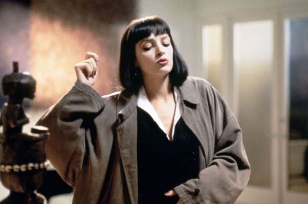 Героиня Умы Турман подарила нам один из самых расслабленных экранных нарядов в истории Голливуда. Строгая сексуальность образа подчеркивал характер ее обладательницы.