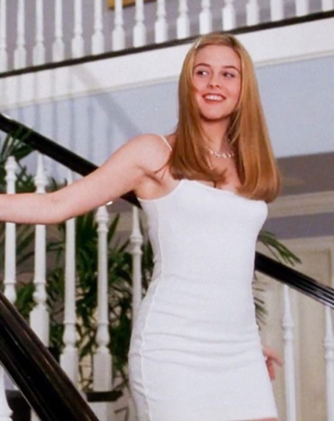 Примером еще одного минималистичного образа 90-х стало белое короткое платье-комбинация от Calvin Klein для главной героини фильма «Бестолковые» (1995). По сюжету простота и длинна тонкого платья повергла ее главной героини, серьезного адвоката, в шок — для него платье было ничем иным, как ночнушкой.