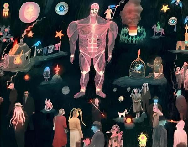 В руках героев картины фонарики, в которых заключены яркие красные огни. Персонажи случайно замечают, что если их выпустить — они начнут летать и светить ещё ярче. Это своеобразная метафора на пагубное влияние окружающих нас людей и среды, выйдя из которой можно по-новому «засиять».