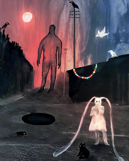 Trapped in a disorienting orbit around the artificial light. 2024 // Иллюстрация без названия. 2024