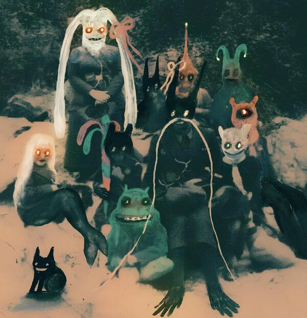 Практически на всех картинах можно заметить чёрного кота со светящимися глазами. Возможно, это образ самой Юлии, которая точно такой же молчаливый зритель, но только уже внутри своих сюжетов.