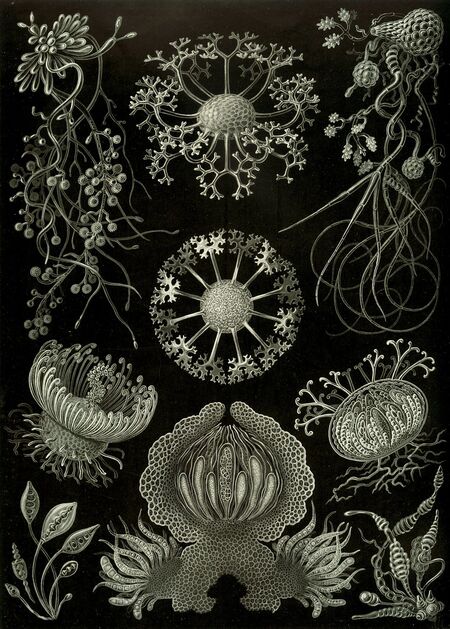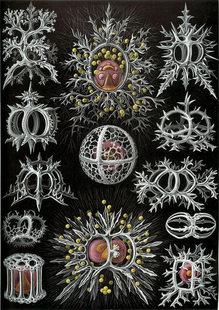 Это особенно заметно в микромире. В книге Kunstformen der Natur [2] Эрнста Геккеля радиолярии и диатомеи представлены как сложные структуры, похожие на дизайнерские, основанные на повторении, симметрии и вариациях.