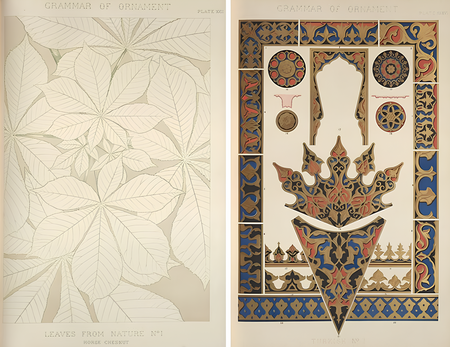 Оуэн Джонс в The Grammar of Ornament [2] систематизировал эти формы как «грамматику» декоративного языка, подчеркивая, что многие принципы идут от наблюдения за природой, но выражаются через упрощение и конвенцию.