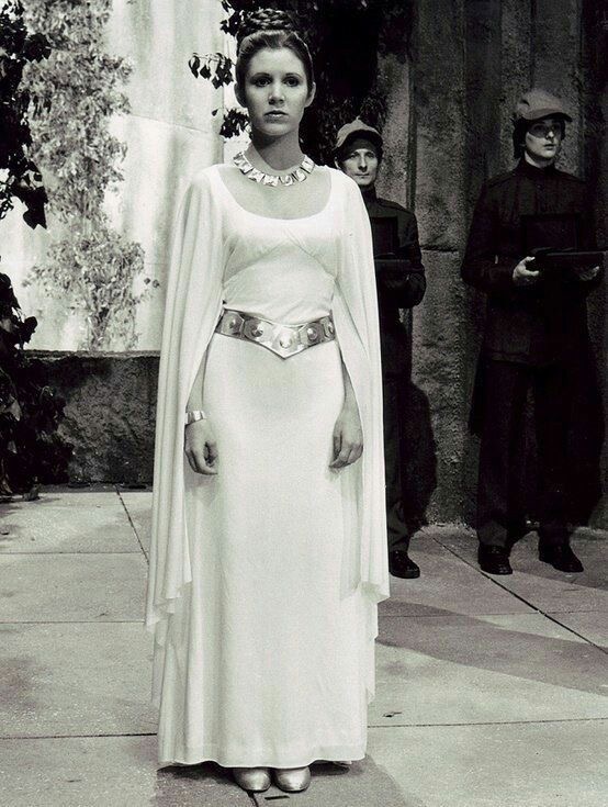 Принцесса Лея 1977 Лея в «Новой надежде» 77 года не является центральным персонажем — её роль это именно «девушка в беде», и это первое отличие от предыдущего персонажа. Она принцесса в беде — конечно, кроме этого, она сенатор, политик, генерал повстанцев, но она буквально принцесса, которая прямым текстом просит о помощи.Тем не менее, она играет важную роль в сюжете: с неё и начинается фильм, когда она отправляет планы «Звезды Смерти» повстанцам, и с её просьбы о помощи начинается путешествие главного героя.Тут есть развитие этого архетипа в фантастике: она не беспомощная — после вызволения из камеры она сама себя защищает, стреляя в штурмовиков. У неё есть характер: она спорит и доказывает свою идеологию. То, что она политик и генерал, не просто произносится вслух — она участвует в дискуссии и разработке плана по нападению на «Звезду Смерти». Она из тропа «принцессы в беде» становится идеализированным образом сильной женщины — так, ей запрещено испытывать негативные эмоции: гнев в защиту идеалов — да, страдание и печаль по утерянному — нет. Она всё ещё является вспомогательным персонажем для главного героя: она успокаивает его после того, как его учителя убили прямо у него на глазах, в это же время её планету со всей семьёй и близкими и со всей её жизнью уничтожили у неё на глазах, а она даже не плачет.Её внешний вид соответствует этому идеализированному образу: она в простом, но элегантном белом закрытом платье, а её волосы собраны в тугие косы на голове. Её образ — это уже эволюция архетипа «девицы в беде»: её функция заключается не в её теле, а в её поддержке главного героя и наставлении на правильный путь своим идеальным образом.