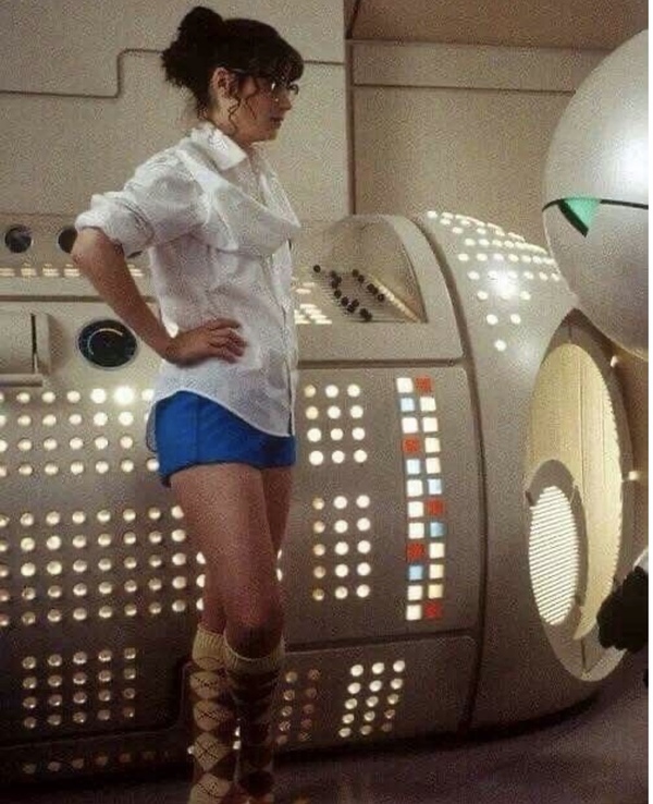 Фильм как бы говорит, что женщина даже на высокой должности ничего не может и не годится ни на что большее, кроме секса, и только с его помощью она может чего-то добиться. Это показано не только сюжетом, но и внешним образом персонажа. В начале фильма она появляется голой в невесомости. Дальше по ходу развития сюжета у неё появляется одежда, которая будет часто меняться. В фильме у главной героини множество разных образов, которых бы не было, будь она мужским персонажем. Все эти образы — сексуальные, объективирующие и футуристичные. В начале это костюм космонавта — массивная светоотражающая куртка, напоминающая скафандр, с зелёными вставками. Следующий образ — это серебристый купальник и сапоги, а дальше идёт кольчуга на чёрном белье. Каждый из её образов подстроен под окружение или ситуацию, они разнообразные, но каждый из них направлен на то, чтобы показать её сексуальность. Из-за огромного количества образов она кажется куклой, которую кидают в разное окружение только чтобы показать новый костюм. Образы не касаются её причёски — её волосы всегда выглядят по моде 60-х.