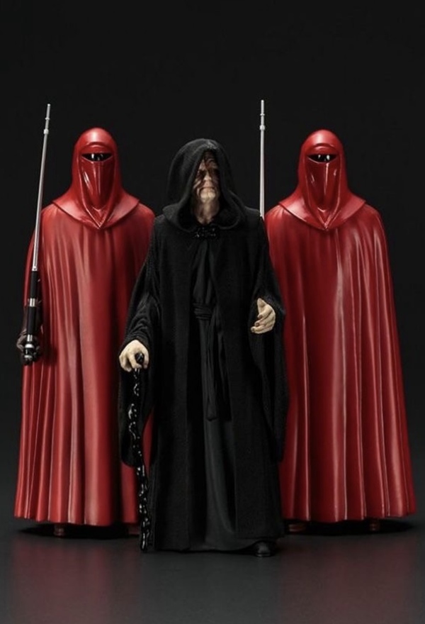 Палпатин В третьей части происходит встреча героя с главным антагонистом — Палпатином, тем, кто управляет системой, против которой борется герой, тем, кто управляет Вейдером.Он никак не раскрывает по-новому злодейскую мотивацию и в сюжете почти ничего не делает. Тем не менее является важной фигурой для сюжета, и в его лице происходит ещё одно развитие архетипа антагониста. Он ключевая фигура, потому с его смертью заканчивается борьба с Империей, система рушится вместе с ним. Что хорошо передаёт то, как работают тоталитарные строя, основанные на одном человеке. Развитие в архетипе происходит потому, что он выполняет функцию — подталкивает героя к злу. Он не просто просит присоединиться к себе, он хочет, что тот сам стал злом. Манипуляциями он почти достигает того, что герой причиняет вред другому злодею.Здесь так же, как в «Барбарелле», злодеи в конце не работают вместе, а пытаются убить друг друга.Их образы просты и в случае Палпатина не несут какого-то подтекста: у него это тёмно-бордовый балахон и жуткое лицо, которое показывает, что он скорее зло, чем человек.У Вейдера это полностью чёрный костюм с шлемом, без которого он не может выжить, и именно костюм объясняет, почему он не мог сам свергнуть императора.