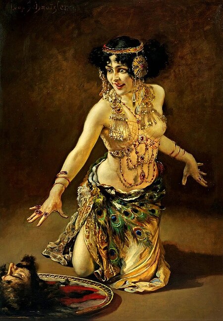 Другим очень популярным образом является Саломея — прекрасная и капризно-жестокая танцовщица. Согласно библейскому преданию, она танцем так пленила царя Ирода, что тот пообещал исполнить любое её желание. По наговору матери, Саломея потребовала голову Иоанна Крестителя на блюде. Этот сюжет, где невинный танец ведёт к ужасной казни, сделал Саломею вечным символом роковой женщины, чья красота и власть неотделимы от смерти.