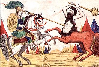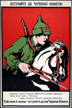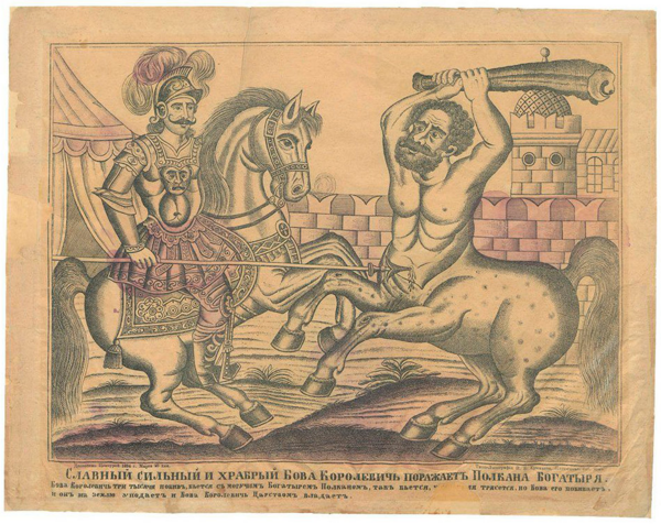 Военный лубок с воином на коне, побеждающим кентавра, трансформируется в плакат с советскими солдатами и конным полководцем. Динамика, героический пафос, противопоставление героя и врага сохраняются. Меняется лишь исторический контекст.