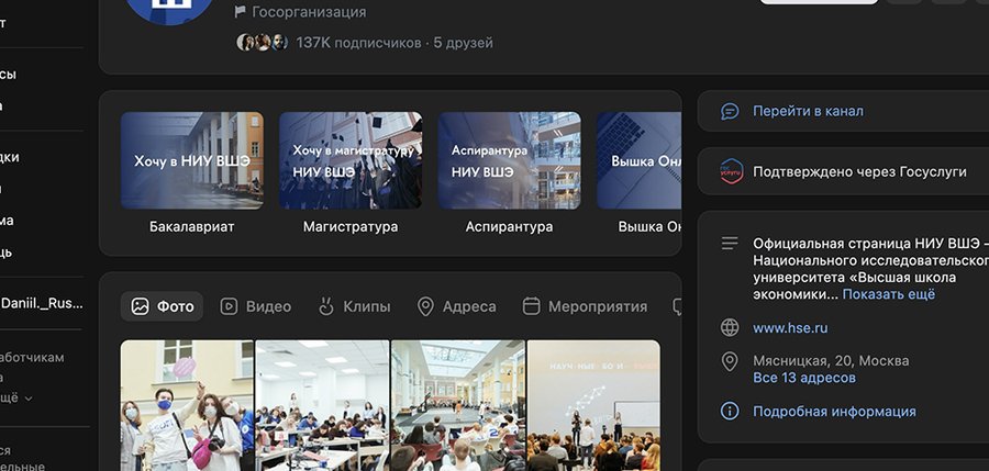 (Соц. сеть «Вконтантке», интерфейс сообщества, 2025 г.) https://vk.com/hse (Дата обращения: 20.11.2025)