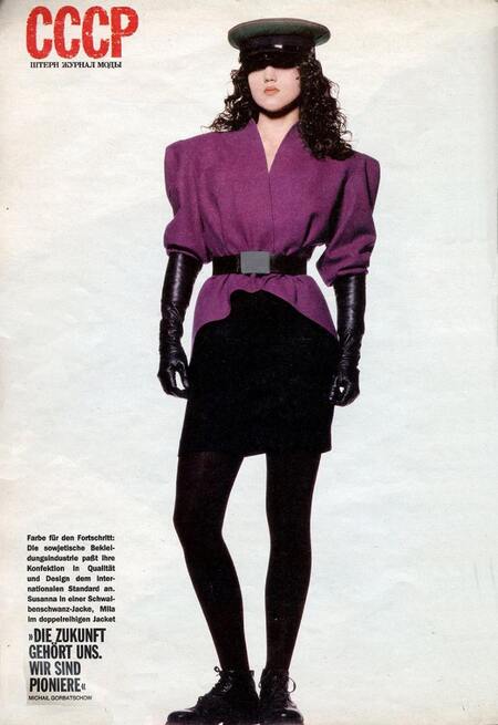 Постепенно начинают появляться официальные дома мод. Съемки номера Stern осуществлял Альберт Уотсон, звезда фэшн-фотографии с мировым именем, однако съемка включала еще и авангардных художников, пробовавших себя в альтернативной моде. Так, появилась первая в истории СССР молодежная коллекция Общесоюзного дома моделей. На левом снимке не только пример «промышленной коллекции», но и того, во что она может превратиться, если дизайнеры перестанут подстраиваться под общепризнанные каноны.