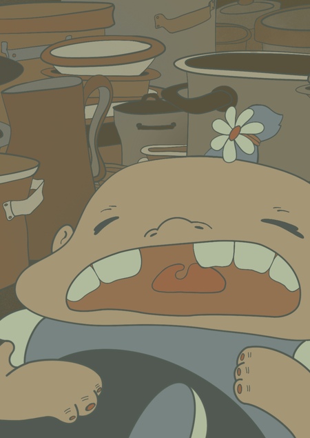 Кухарка привела на работу дочку, которая, утомившись, уснула среди грязной посуды.