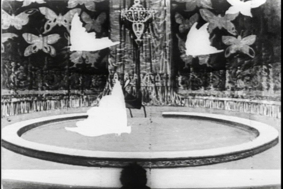 Сцена с изящно порхающими бабочками, трепетная и гипнотическая, кажущаяся гвоздем мистической цирковой программы не дает и намека на жуткое и резкое превращение сна в кошмар, где гигантский паук (хотя его пропорции искажаются) нападает на человека и похищает его. Темный ужас бессознательного, скрывается за властью воображения. Безобразное граничит с прекрасным.