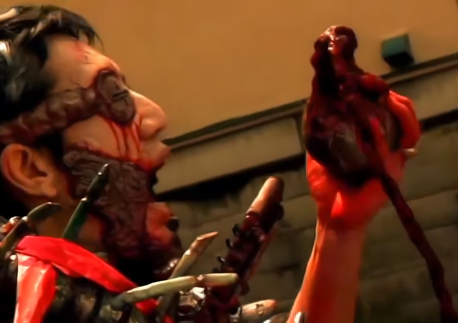 Фильм — Тэцуо, железный человек; Режиссёр — Синья Цукамото; Превращение главного героя (которого играет Томорово Тагути) в железного человека; Основу всех практических эффектов составляет пластический грим, накладки и костюмы сделанные из папье-маше, фольги, маленьких металлических предметов, проволоки, пружин и гибких пвх труб; Супервайзер визуальных эффектов — Синья Цукамото, дизайнер по костюмам — Кэй Фудзивара;