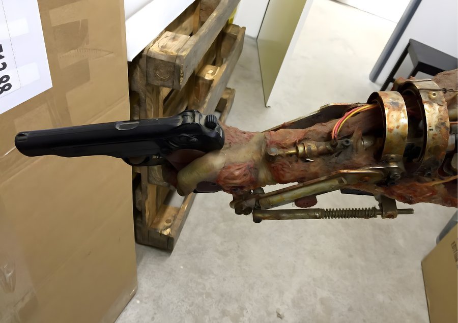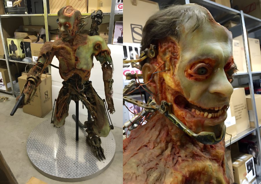 Фильм — Терминатор; Режиссёр — Джеймс Кэмерон; Основу всех практических эффектов фильма составляет пластический грим, аниматроника, стоп-моушен, накладки и элементы грим-костюма сделанные из латекса, силикона, пластмассы, поролона, металлических элементов со светодиодами и фольги; Супервайзер визуальных эффектов — Стэн Уинстон;