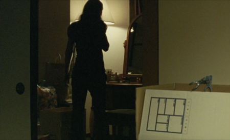Композиция построена на отделении персонажей друг от друга вертикальными или диагональными линиями в интерьере: перегородками, дверными рамами, шторами. Пространство — главный посредник между чувствами, которые нельзя произнести.