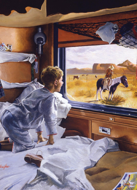 «Train Window on the West», Джордж Худжес, 1954 г. // «Train Landscape», Эрик Равиллиос, 1940-е