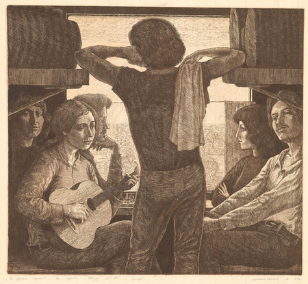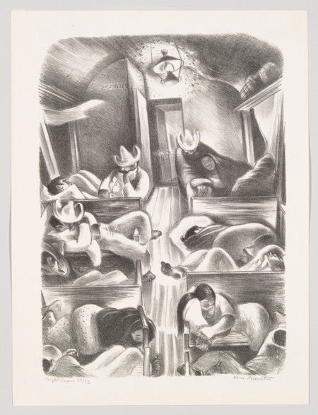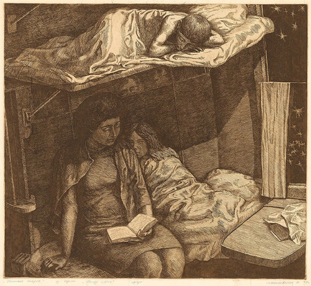 «Unwelcoming passengers in train compartment», Мари Эванс, 1891 г. // «Night Train», Дорис Розенталь, 1946 г.