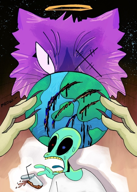 Инопланетянин Волдырь, обожающий человеческую культуру, сталкивается в баре с изгнанной кошкой-богиней Кисой, которая презирает людей. Узнав, что в этом мире нет магии, Киса захватывает власть над городом, провозглашая себя новым божеством. Теперь Волдырь должен остановить её, пока его самоуправство не привлекло внимание высших космических сил, чьё вмешательство грозит уничтожением всей Земли.