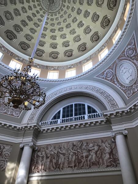Русские классицисты особенно активно использовали этот принцип, поскольку работали с масштабными залами, длинными коридорами и высокими потолками. Пространство должно было быть во всех смыслах величественным.