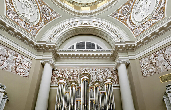 Всё вместе создаёт впечатление экзотического и монументального пространства, которое сохраняет строгую классицистическую структуру.