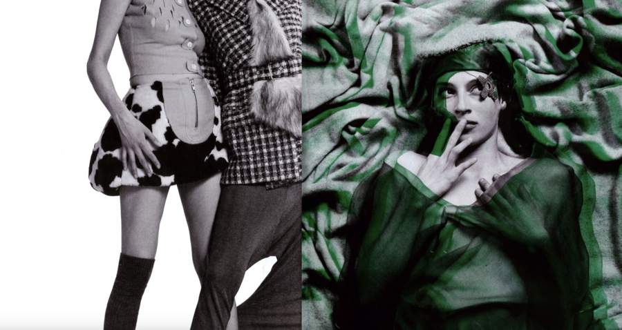 Глянец решительно порвал с традицией мягкого или естественного освещения. Его заместил жесткий, контрастный студийный свет, который выбеливал кожу до фарфорового состояния, создавая резкие тени и эффект неестественной, почти двумерной «плоскости». Цветовая палитра стала оружием против серости прошлого. Яркие, «кислотные», максимально насыщенные цвета доминировали на страницах. Также на страницах журналов можно было заметить приёмы фетишизации.