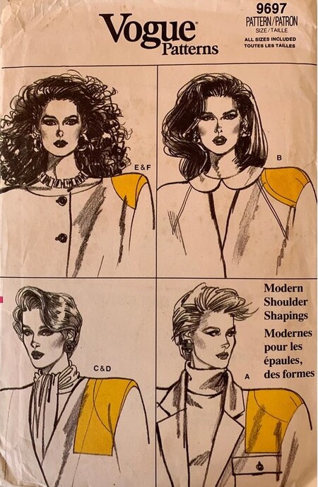 скан полосы советского журнала о моде 80х// Виды подплечников, Vogue Patterns № 9697, 1986