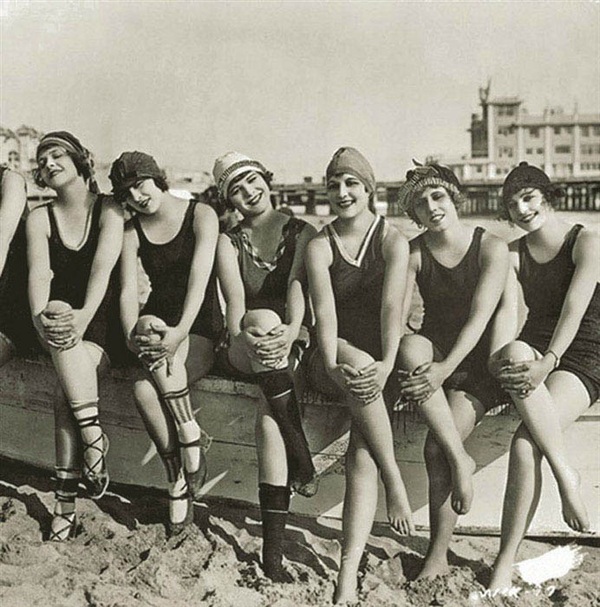 Если взглянуть на фотографии начала XX века, можно увидеть, что хоть женский пляжный костюм и становился проще (стали использовать иные материалы, ушла привычная пышность, купальник стал более открытым), он всё ещё напоминал собой лёгкое летнее платье ниже колена.