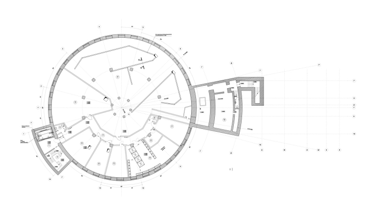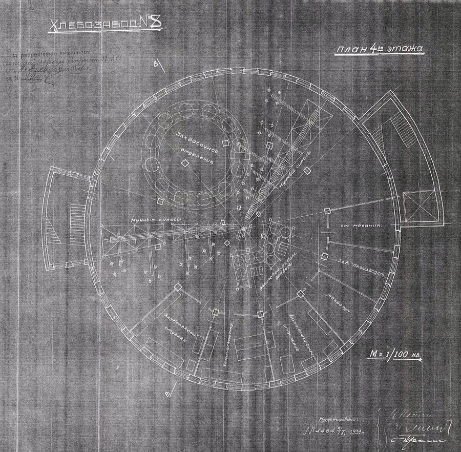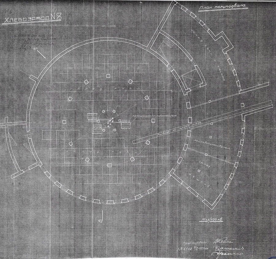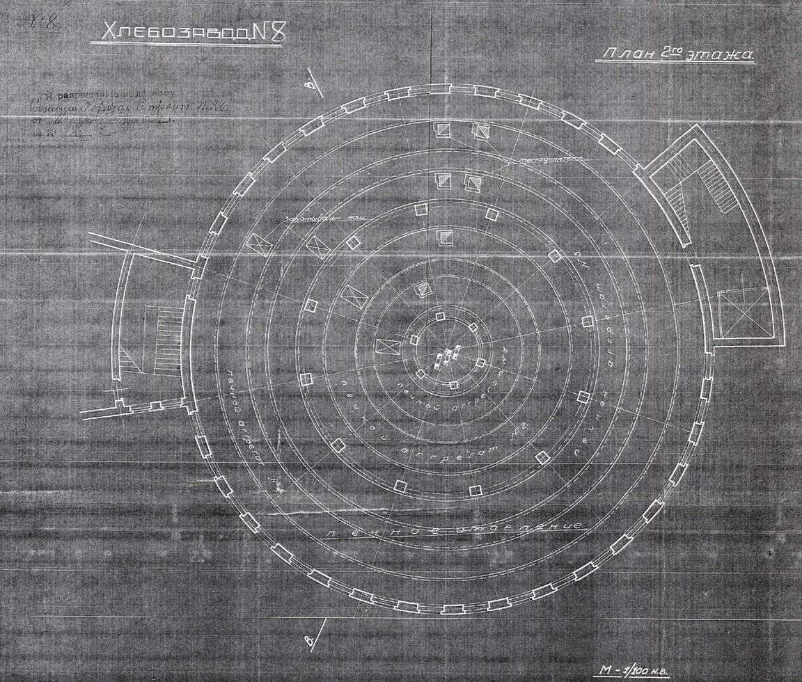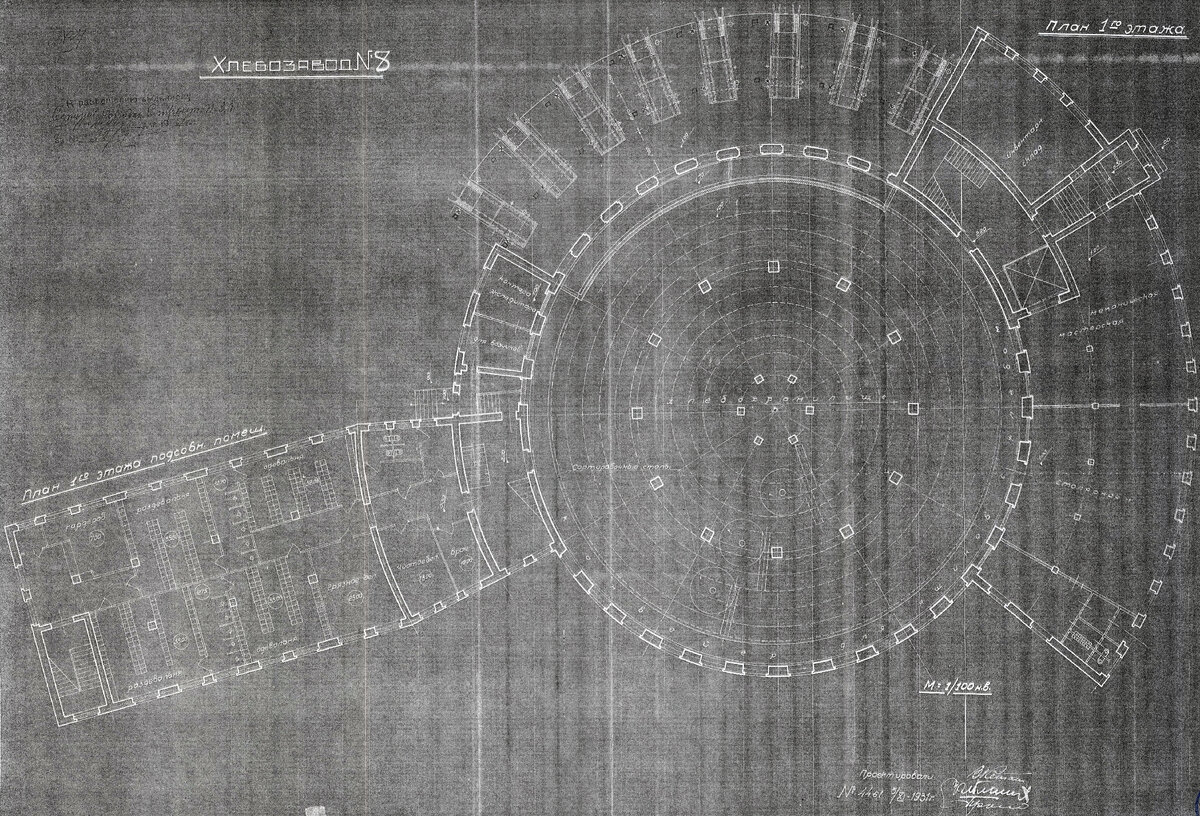 - На месте основного цилиндрического здания хлебозавода («ротонды»), где находилось непосредственно все производство группа КИШ разместила экспозицию, посвященную строительству и самому архитектору хлебозавода.