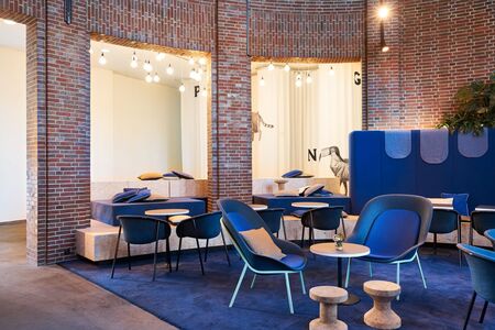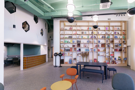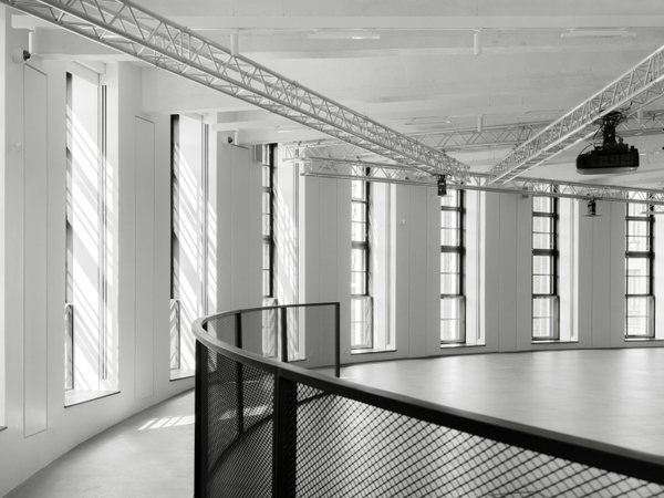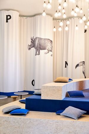Проект удачно интегрирован в строгое здание 1920-х годов, находящееся в сердце Музея поп-культуры (NRW-Forum). Работа с пространством была направлена на создание «атмосферной творческой обстановки», которая способствует неформальному общению и культурному обмену. Кроме того, в пространстве организовано гибкое зонирование, позволяющее площадке трансформироваться в зависимости от события.