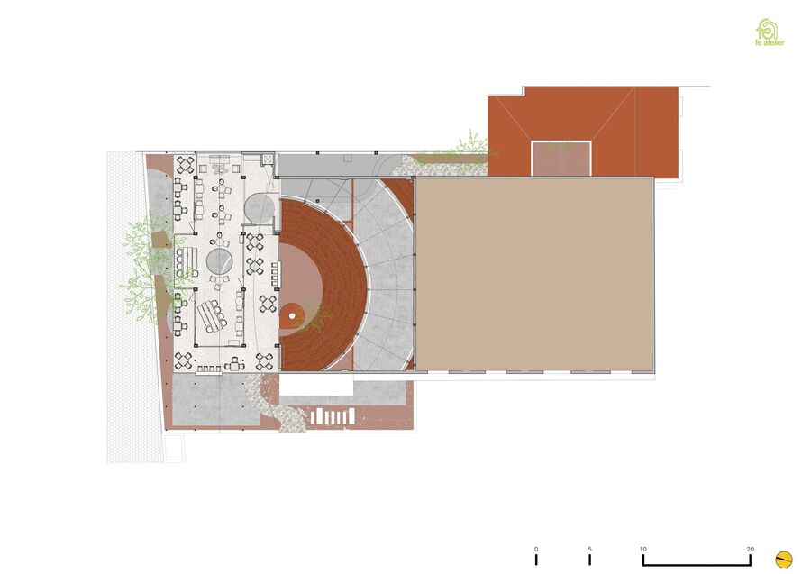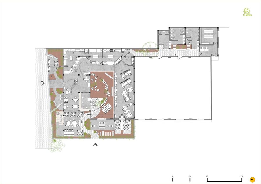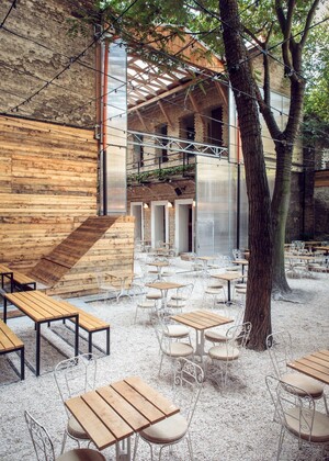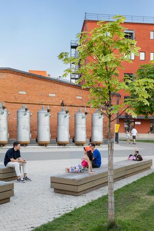 Кроме того, бывшее промышленное здание вместило в себя также зону кофоркинга и кафе, архитектурную школу MASTERS и офисные помещения.